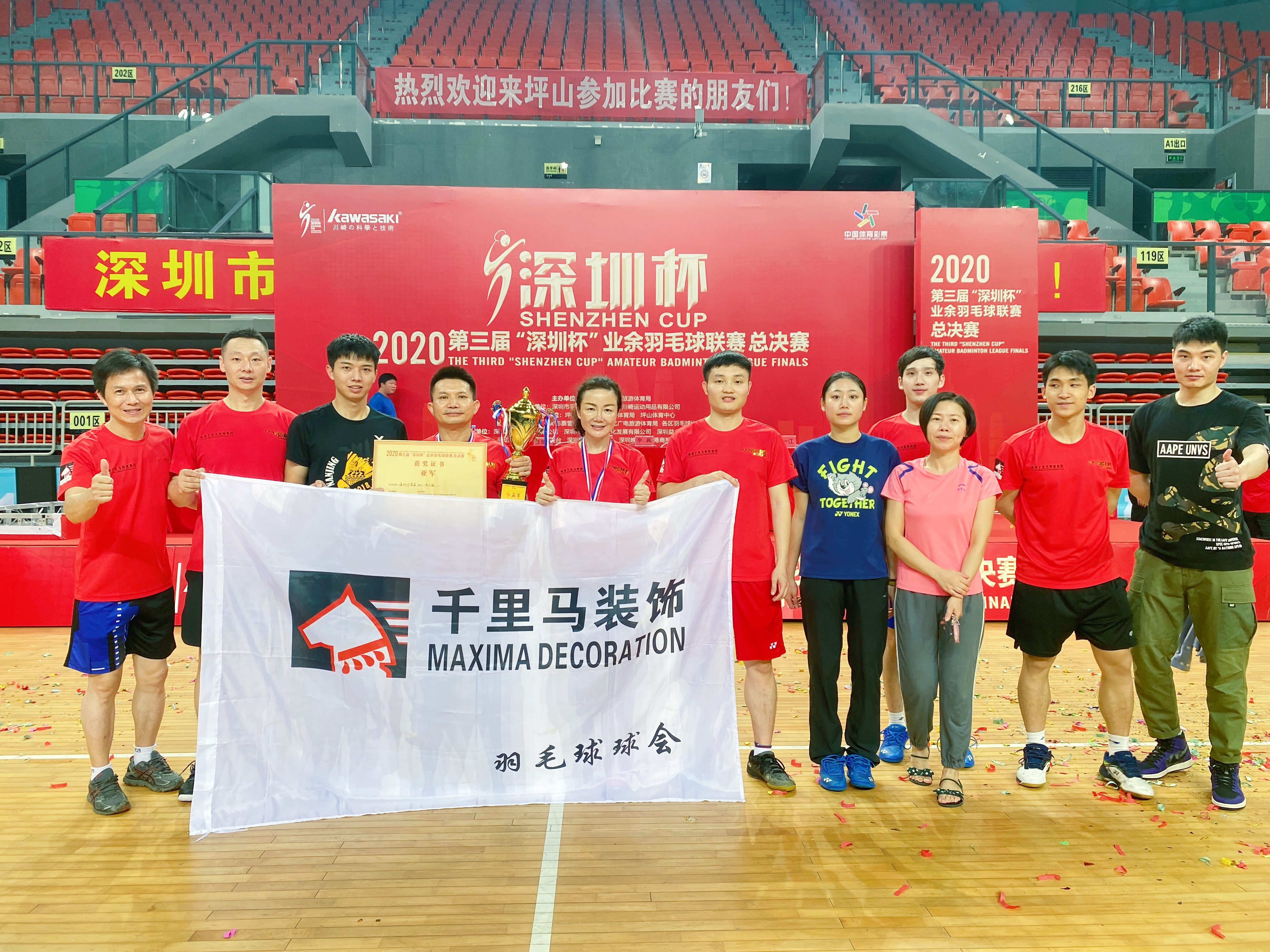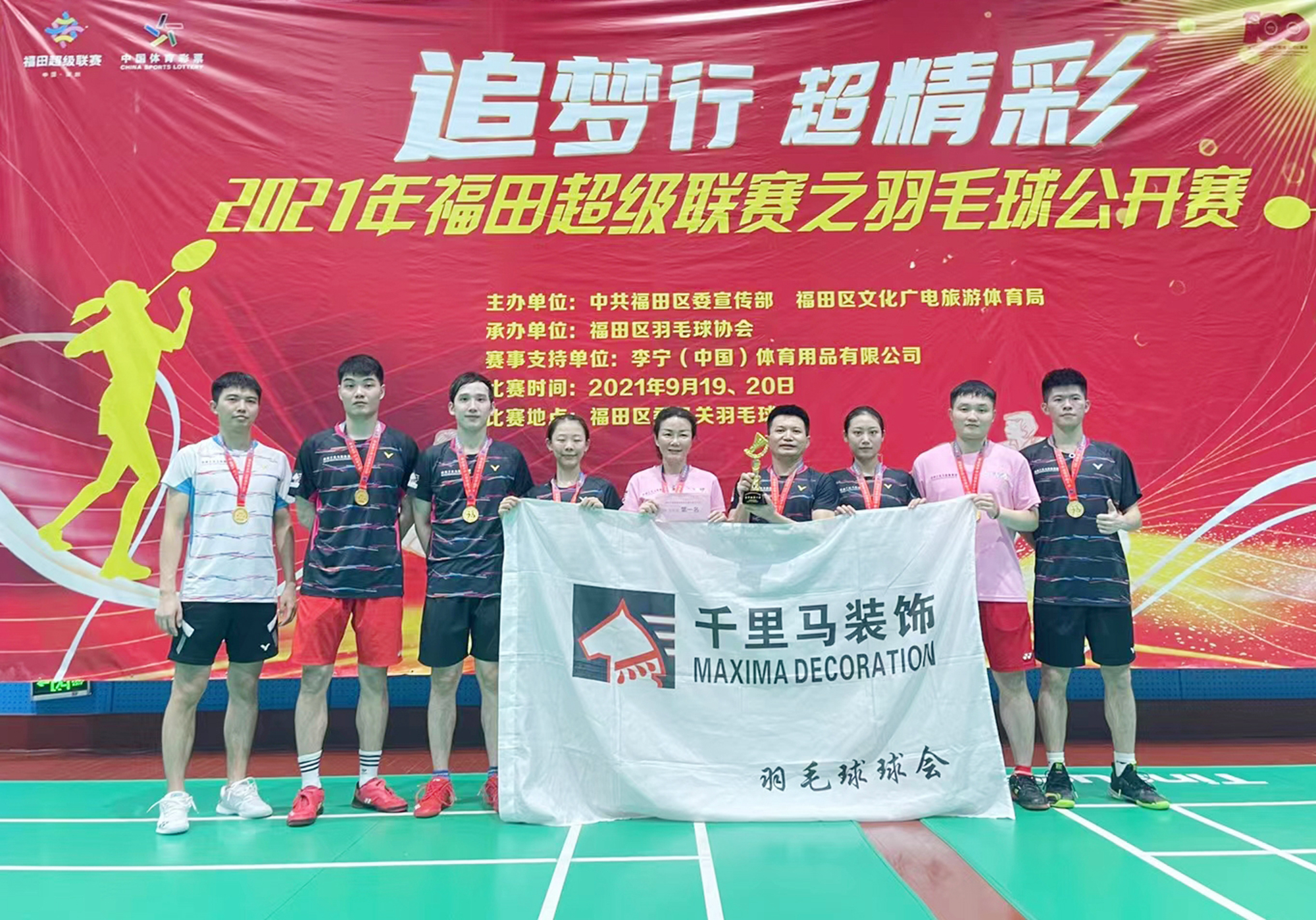 2020年,在深圳經(jīng)濟(jì)特區(qū)建立40周年、福田區(qū)建區(qū)30周年之際,福田區(qū)創(chuàng)新辦賽理念,首創(chuàng)體育超級(jí)聯(lián)賽。本次賽事以“動(dòng)起來(lái) 超精彩”為主題,從9月持續(xù)到12月,超過(guò)30項(xiàng)賽事活動(dòng)、3000場(chǎng)比賽。 為了響應(yīng)福田區(qū)全民運(yùn)動(dòng)、全民健身的號(hào)召,深圳千里馬裝飾集團(tuán)組織了兩支戰(zhàn)隊(duì)參加了高手如云的超級(jí)聯(lián)賽之羽毛球公開賽。 經(jīng)過(guò)兩天的激烈角逐,深圳千里馬一隊(duì)和深圳千里馬二隊(duì)靠著頑強(qiáng)的拼搏精神以及默契的團(tuán)隊(duì)配合,分別奪得冠軍和季軍。 福田超級(jí)聯(lián)賽是一項(xiàng)全民參與的福田體育特色活動(dòng),羽毛球賽作為其中重要的一項(xiàng)體育賽事,掀起了羽毛球運(yùn)動(dòng)的熱潮,讓福田羽毛球愛好者享受到運(yùn)動(dòng)的喜悅。再次感謝福田區(qū)政府為市民舉辦的這次體育活動(dòng),讓大家擁有了更多的獲得感和幸福感!