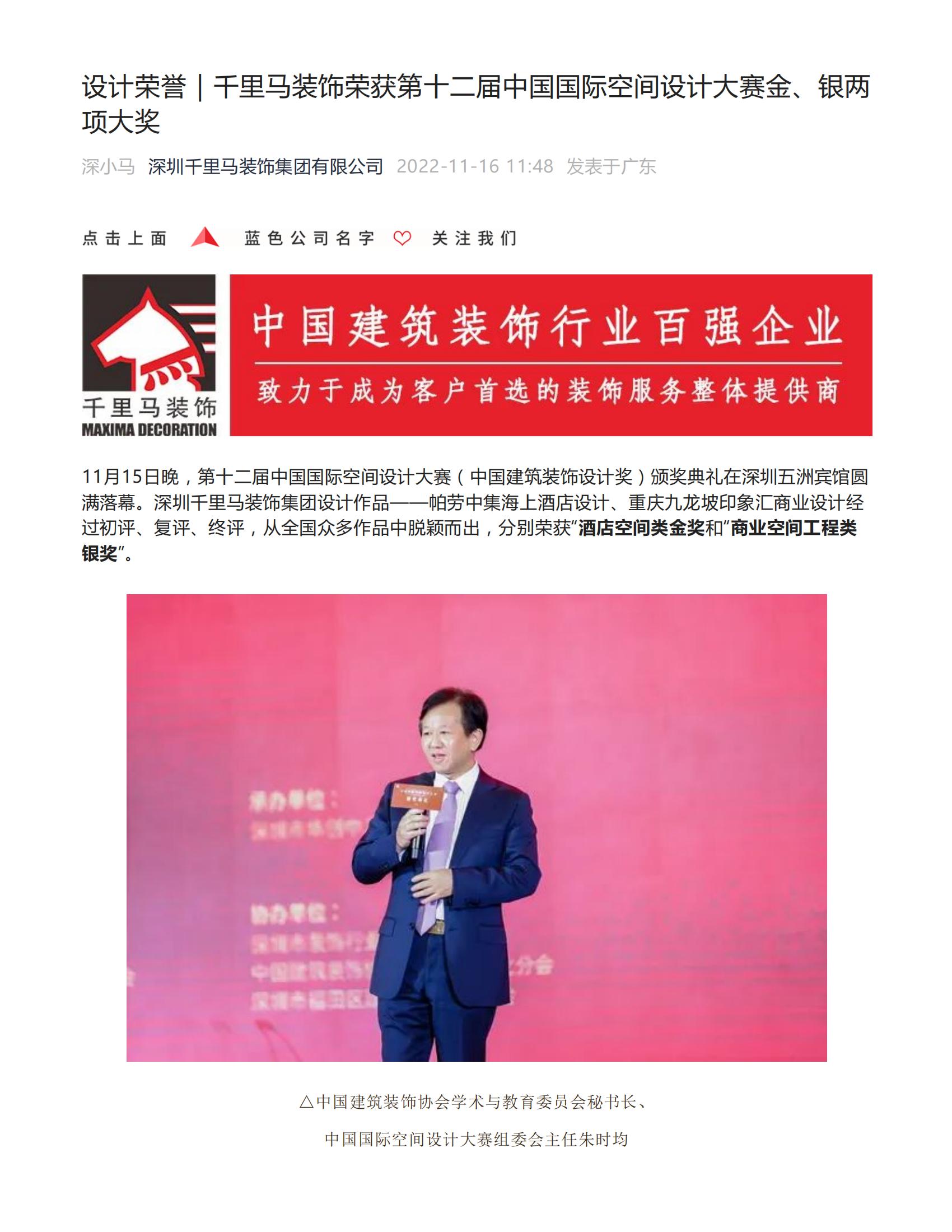 設計榮譽|千里馬裝飾榮獲第十二屆中國國際空間設計大賽金、銀兩項大獎