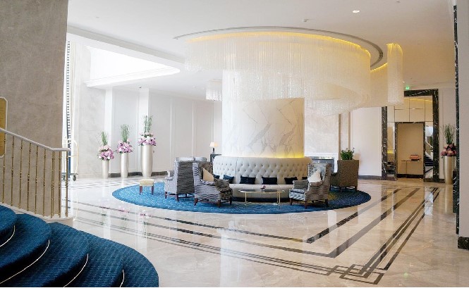 東海國際酒店位于深圳市福田區深南大道7888號,建筑面積為14135㎡。我司主要承建酒店一層大堂吧、電梯間、十一至十八層客房部等部位的地面、墻面、天花裝飾工程,房間內防水工程,機電工程等,造價3648萬元,工期252天。