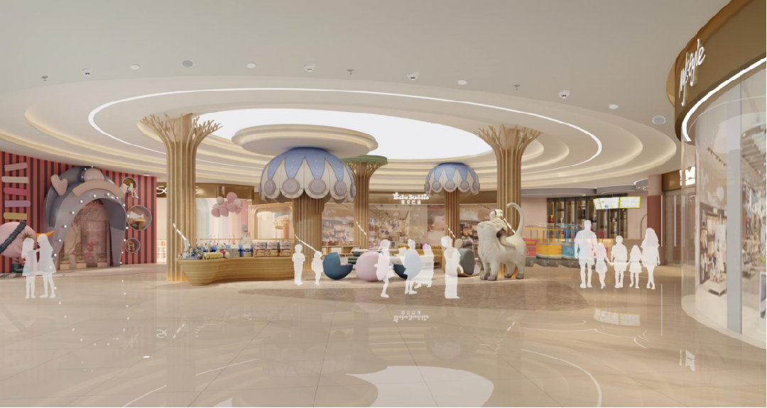 潮州濱江華府商業項目設計外立面設計元素鳳的設計概念,負一層,功能為超市,一層為黃金,首飾,主力店,二層,服裝,三層,兒童樂園,母嬰用品,四層,餐飲區,五層,戶外泳池,花園式宴會區。設計主題以廣濟橋的建筑形態去設計布置生活超市區域,寓意廣濟百粵之民,為人們提供生活便利。結合潮州的韓江跟筆架山,意在形成“水聚山環旺氣連”的磁場。